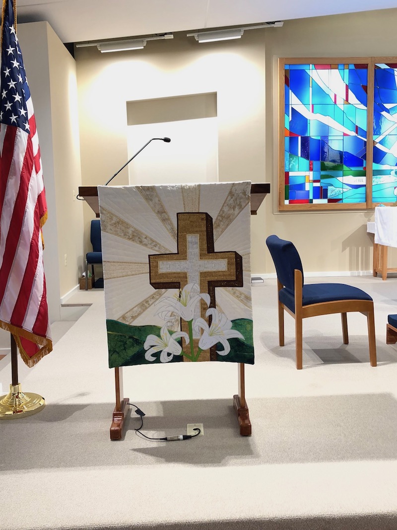 This quilt hangs in the sanctuary at the center of our